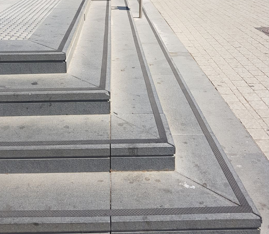 פסים נגד החלקה מותקנים לרוב על ספי המדרגה כדי מנת למנוע החלקה. הפסים קיימים במספר מידות עובי שונות.