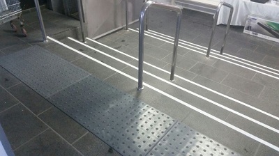 חטיבת מנגישים מבצעת התקנה של פסים מובילים ולחצני ברייל לאנשים עם לקות ראייה.