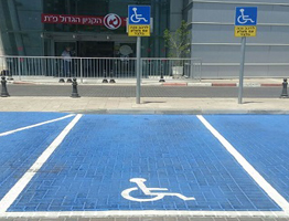 חטיבת מנגישים מבצעת צביעת חניות לנכים בהתאם לתקנות.