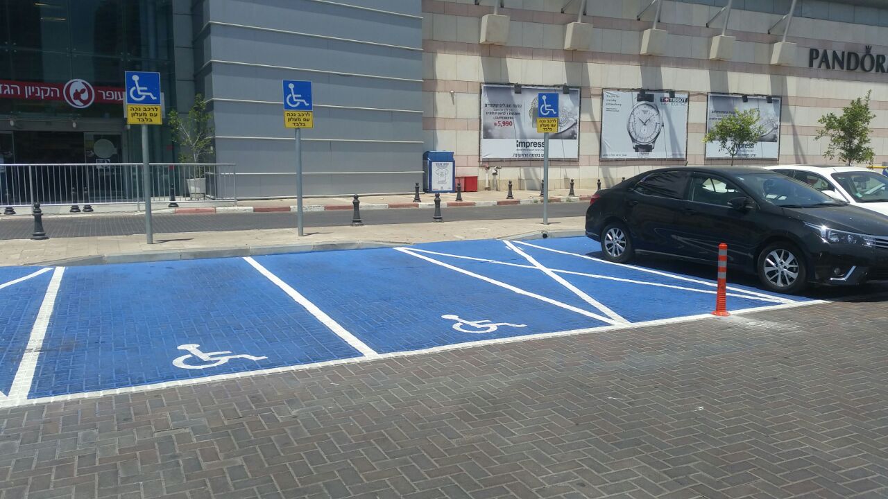 חטיבת מנגישים מבצעת צביעת חניות לנכים בהתאם לתקנות.
